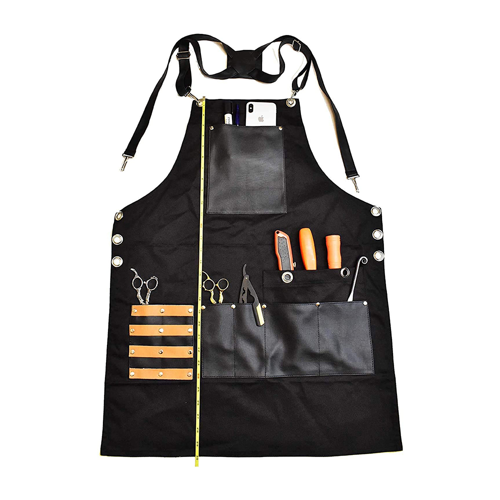 - Professional Barber Apron is handmade with durable and premium quality with Custom length, Waterproof, no smell and environment protection. Strong stitched utility pockets and thick top and bottom hems for strength and structure.